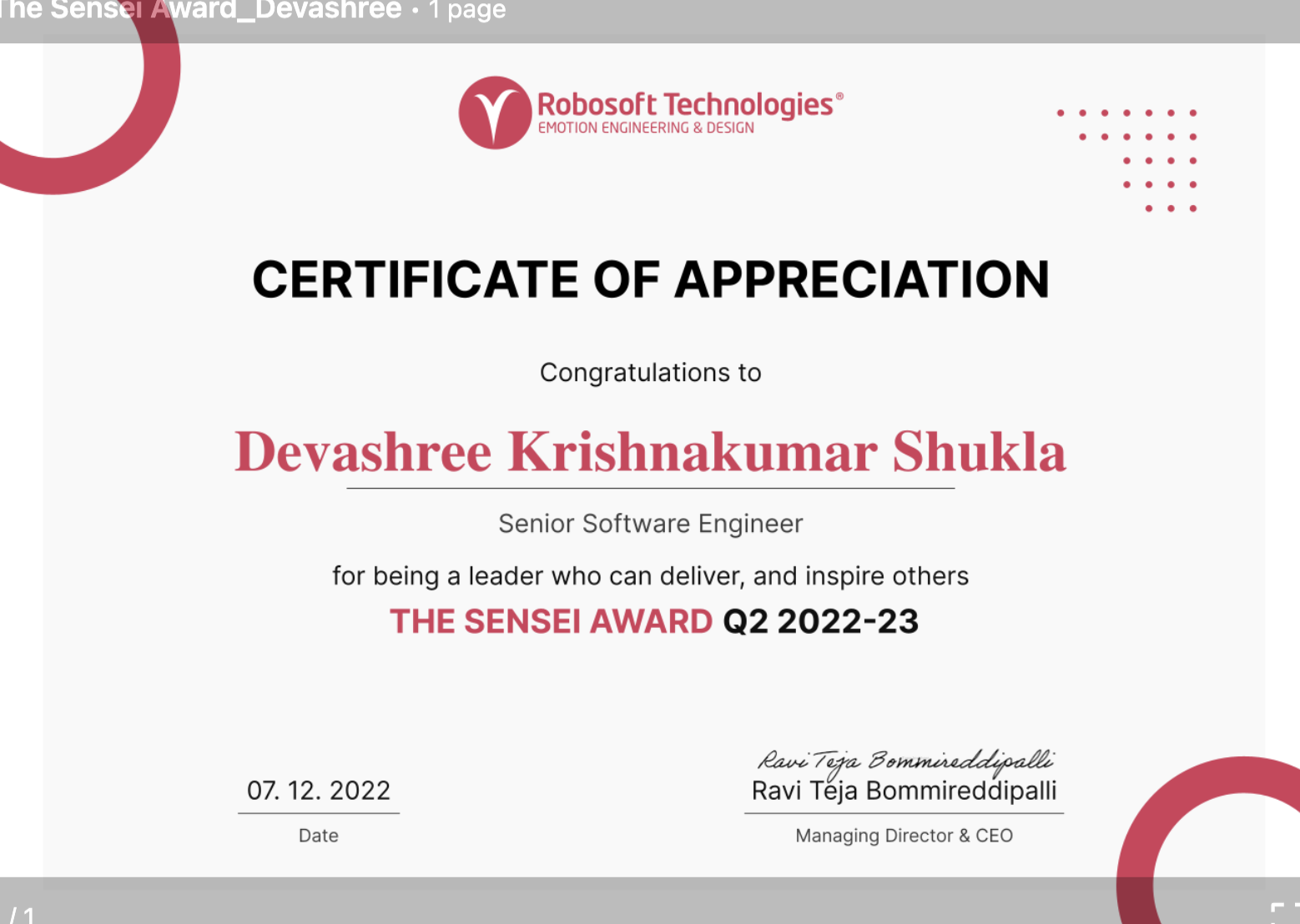 I know Devashree since 2009, as we studied together in same college same class. She was brilliant student at and very good developer at that time as well. She is enthusiastic & hardworking , always ready to take new challenge and always keen to learn. Apart from professional part she has very good human ethics with helping nature as well.